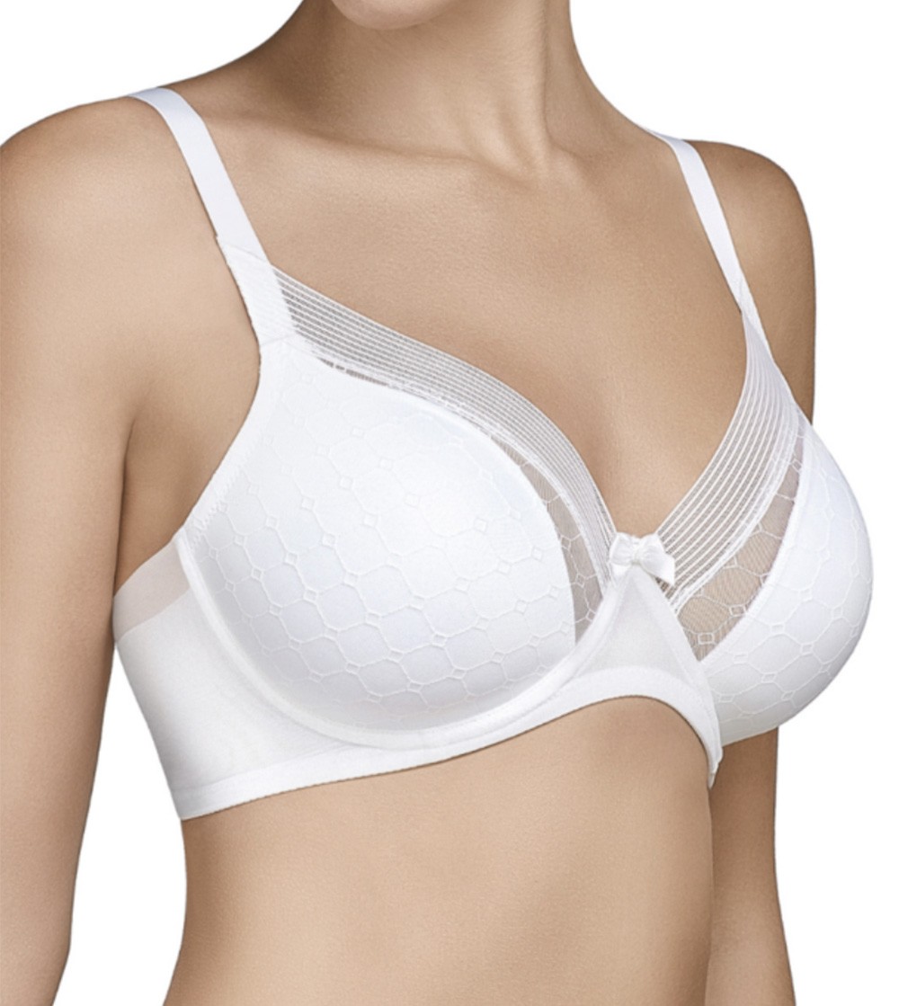El sujetador Katia incorpora una estructura con aros y copas con relleno escotadas que elevan y centran el busto, creando un escote más definido y favorecedor. Está pensado para prendas abiertas o cortes más pronunciados.