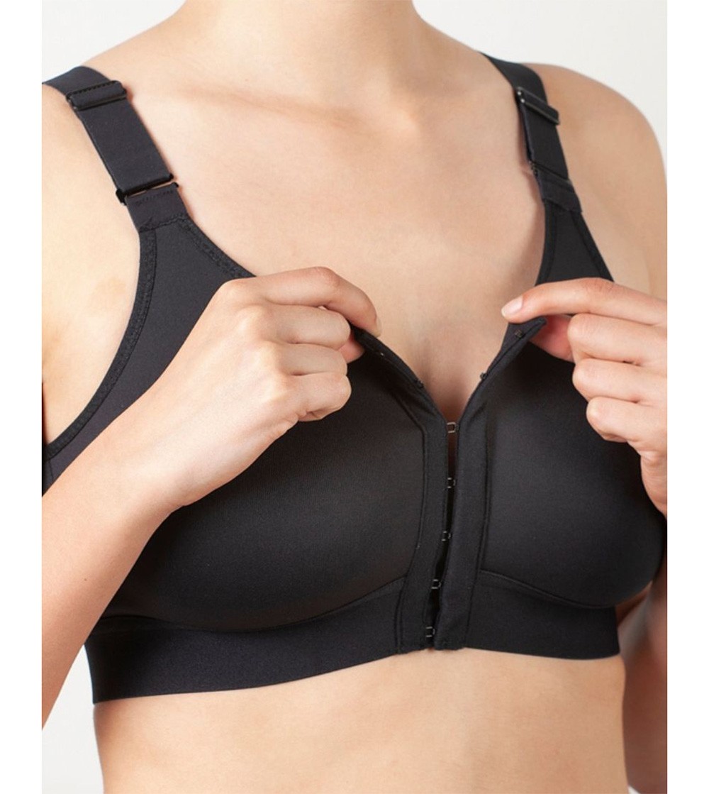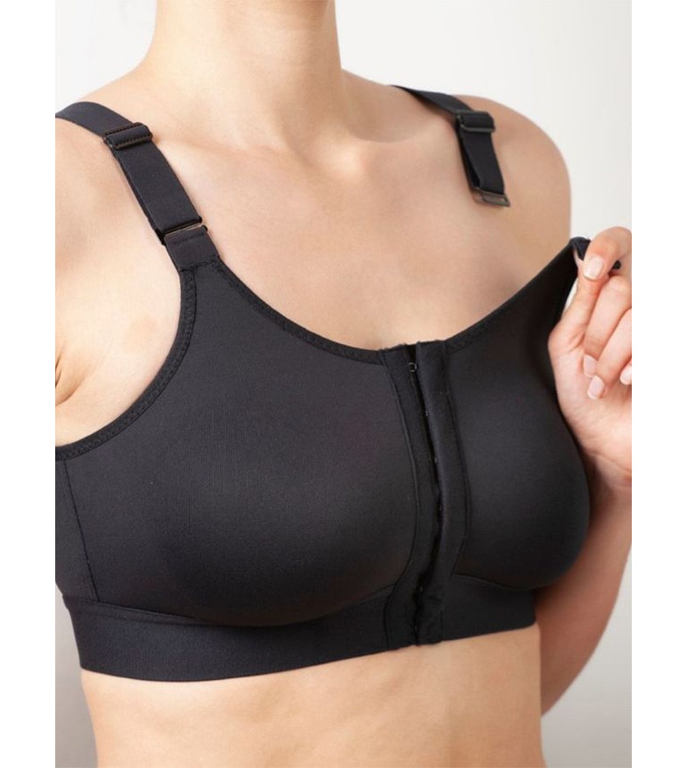 El modelo 8002 de Selene está pensado para el periodo de recuperación tras una intervención, priorizando accesibilidad y confort. La apertura frontal con corchetes simplifica el ajuste y evita movimientos innecesarios, mientras que las copas abatibles permiten realizar curas o revisiones médicas de forma rápida.
